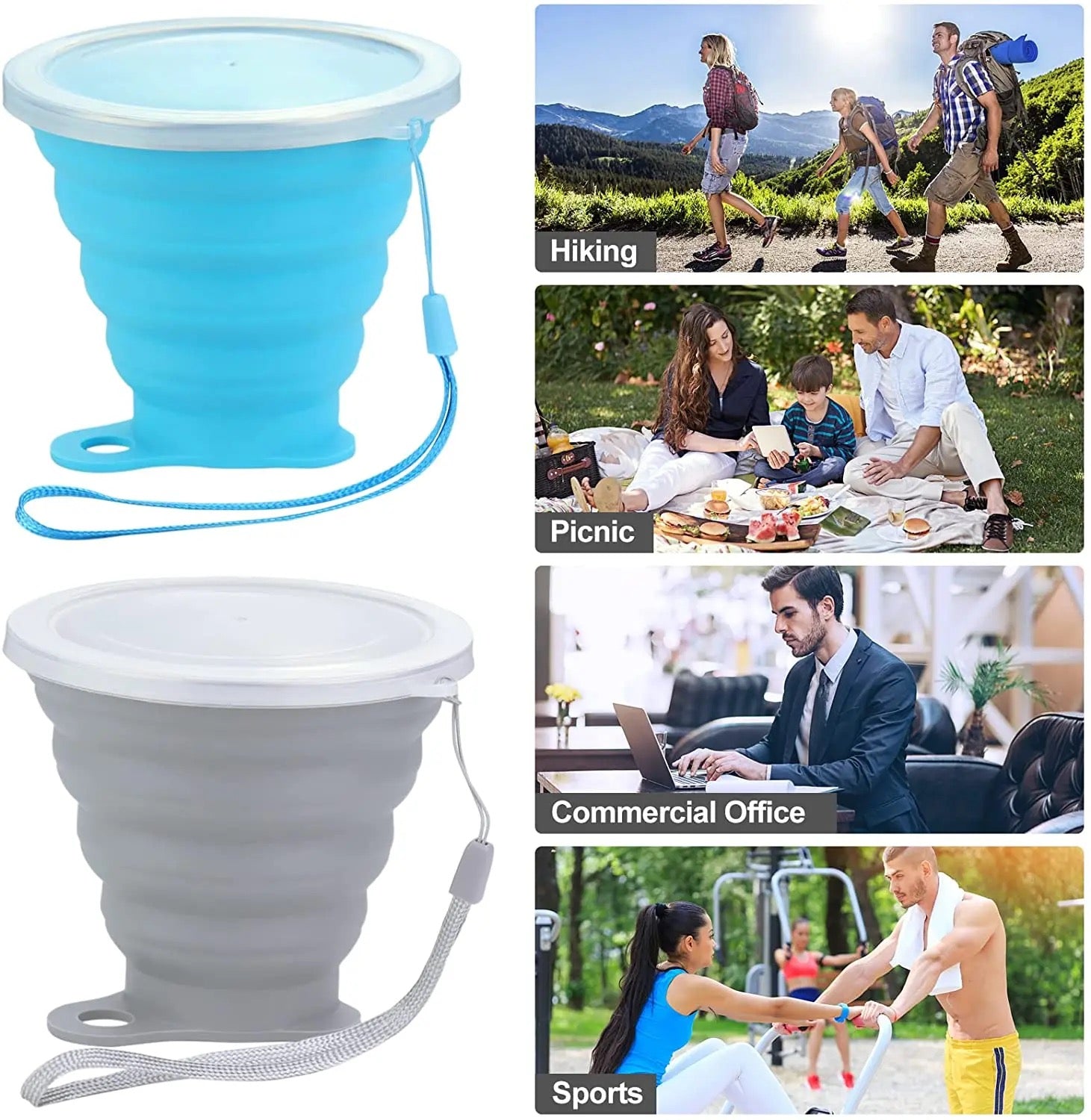 Silcone Foldable Travel Cup Glass with Lid